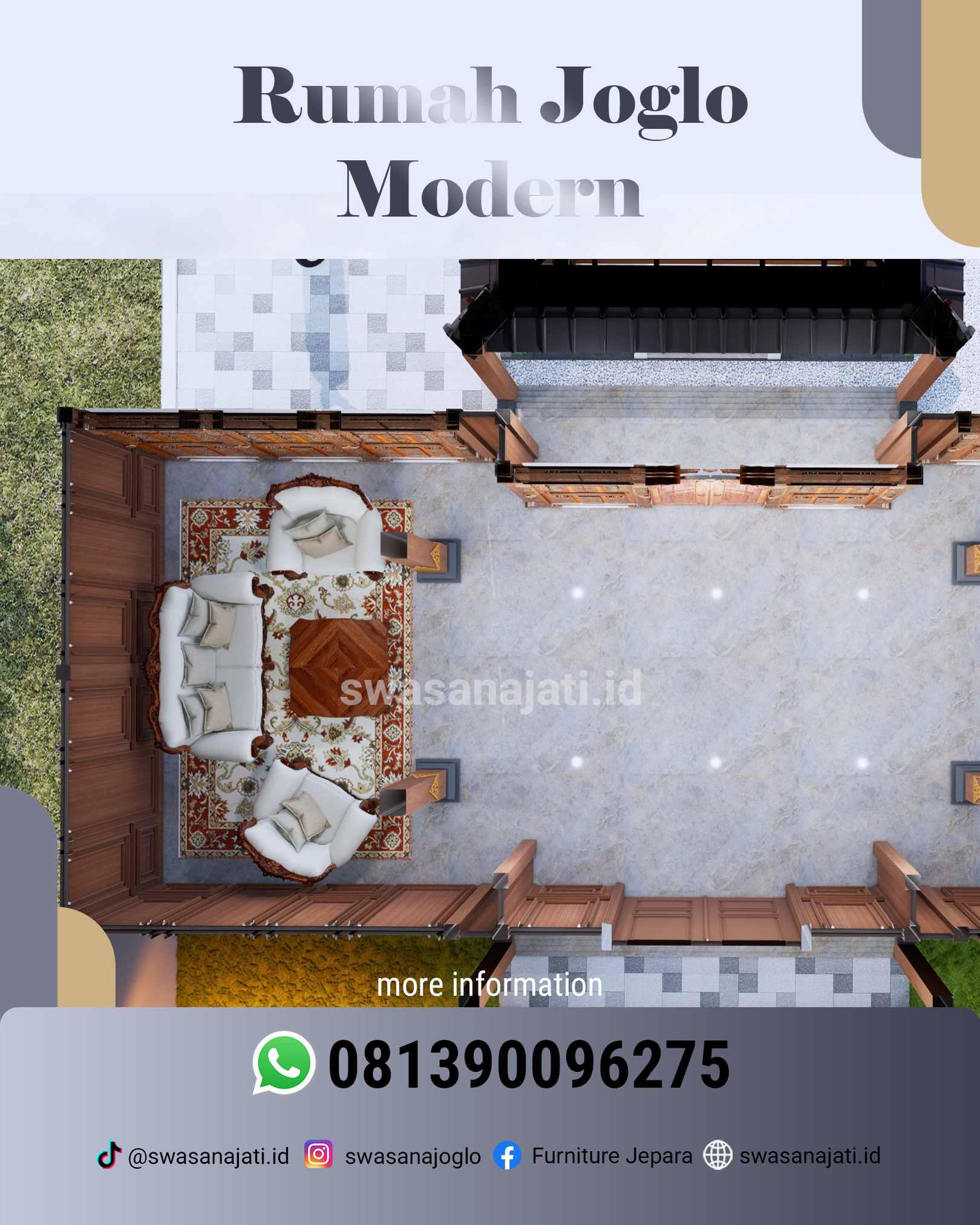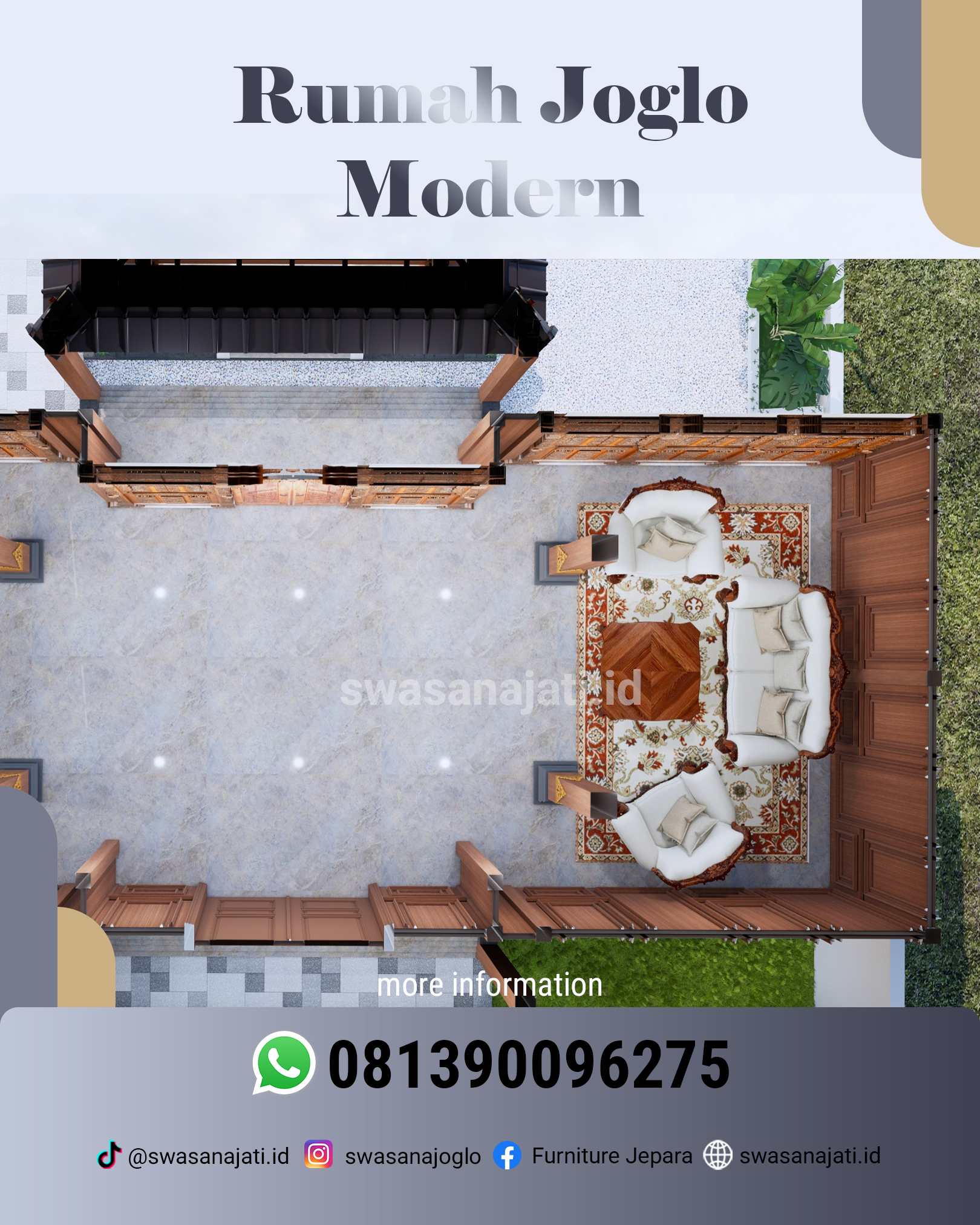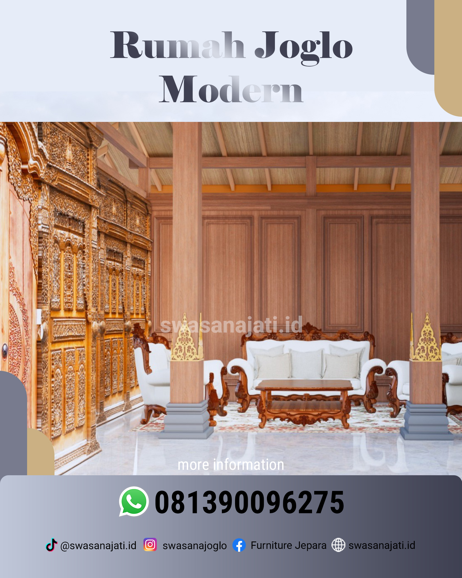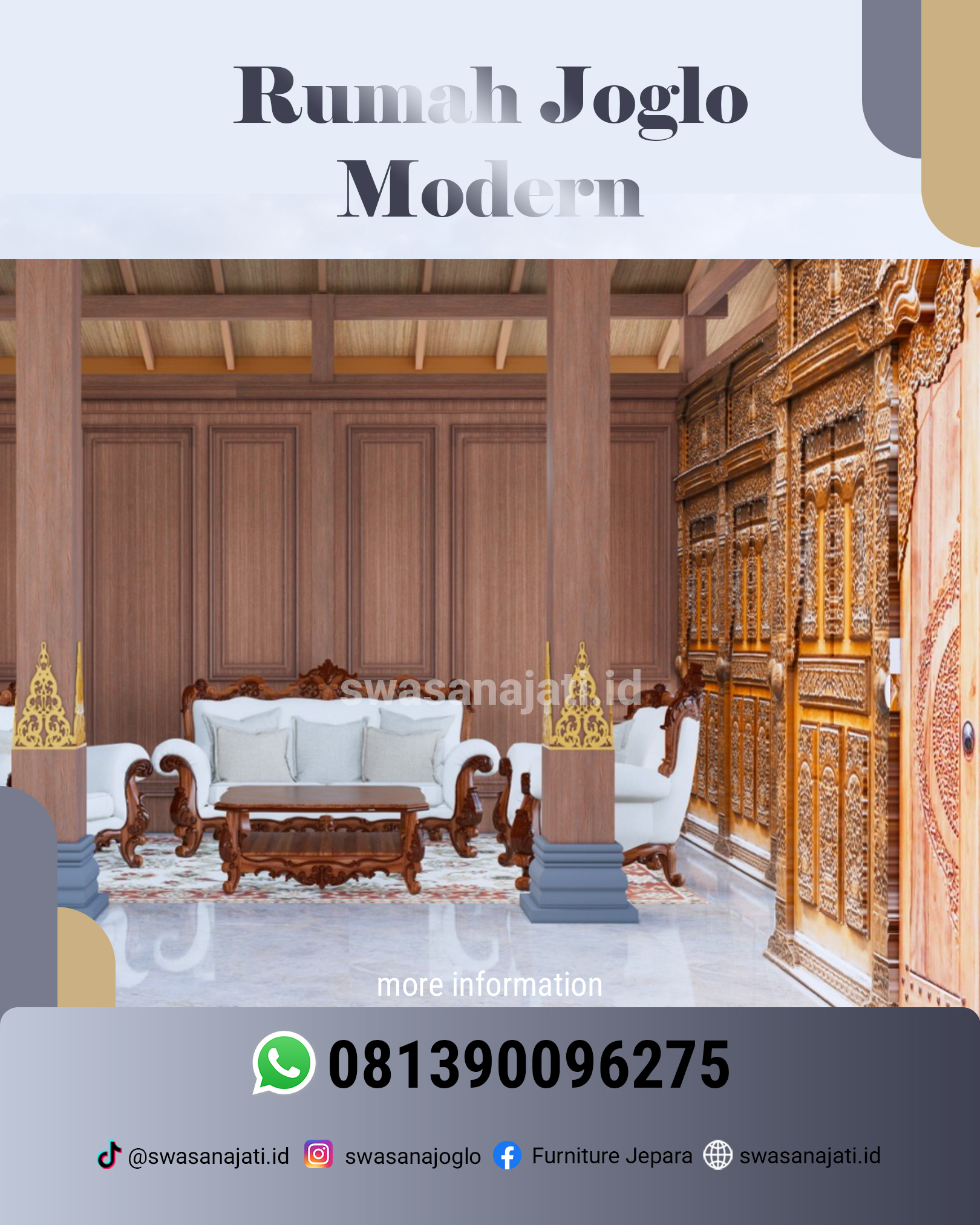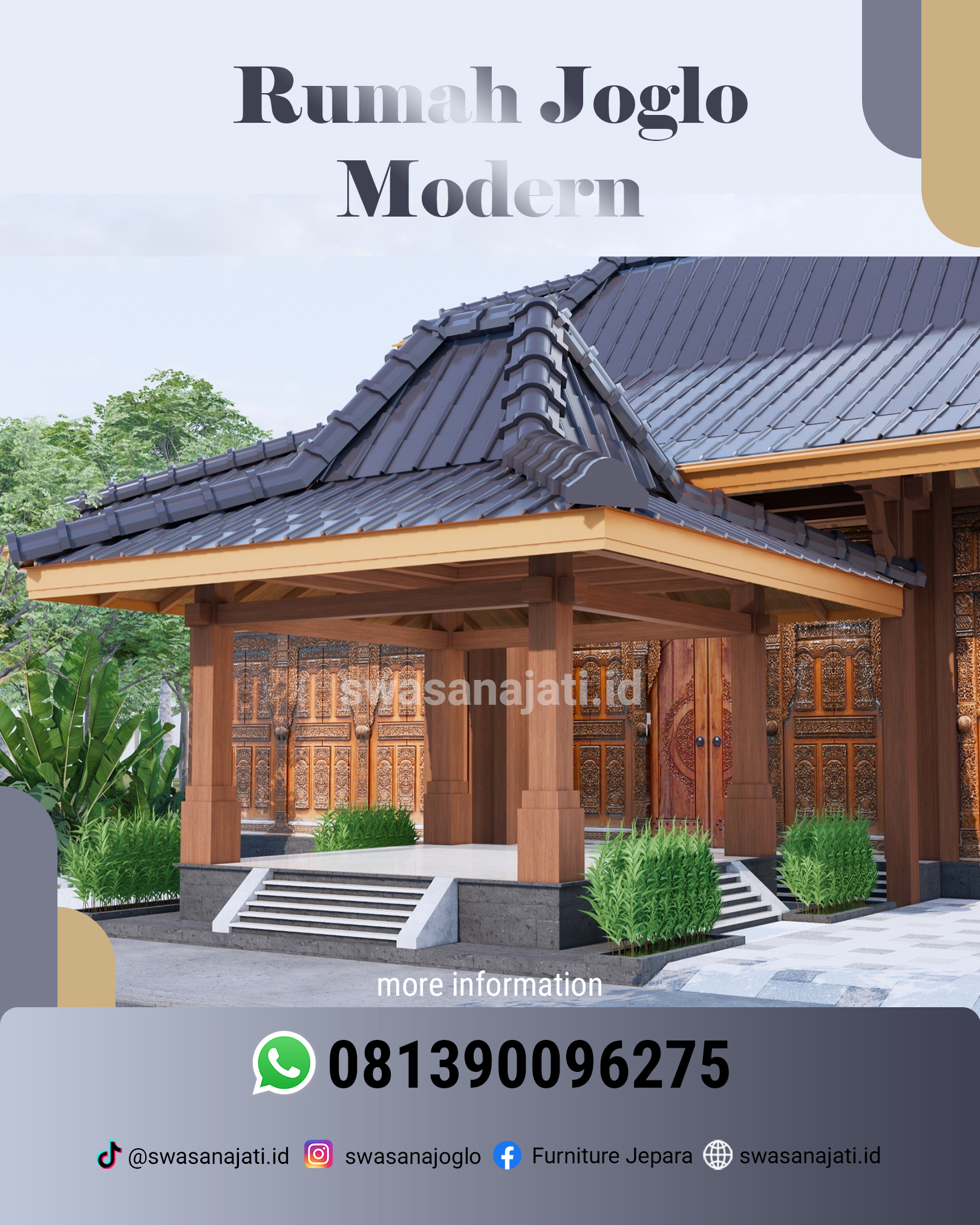 Rumah Joglo Gebyok Modern adalah reinterpretasi rumah joglo tradisional dengan sentuhan desain modern. Kombinasi ini melibatkan pemanfaatan elemen-elemen khas joglo seperti atap tajug, tiang soko guru, dan ornamen ukir, namun dengan gaya arsitektur yang lebih minimalis, bersih, dan fungsional.